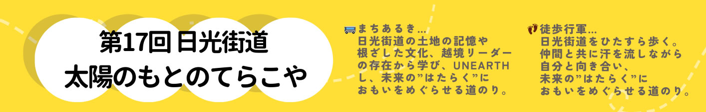 日光街道という昔の偉人が足跡を残した道を、今の時代、これからの時代を担うわたしたちがバトンをつなぎながら歩く。そしてそこでの歩みが、次世代の子どもたちの”わくわくはたらく”根っこを育てる。「日本の未来の”はたらく”を考える」。