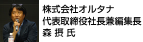 | 2010年6月25日、日本ES開発協会の春の定例会として、環境とCSRと「志」のビジネス情報誌『オルタナ』を発行されている株式会社オルタナの森 摂代表取締役兼編集長をお迎えし、開催いたしました。森氏は、東京外国語大学スペイン語学科を卒業後、日本経済新聞社入社。ロサンゼルス市局長を経て。2002年9月退社。同年10月ジャーナリストのネットワークであるNPO法人ユナイテッド・フィーチャー・プレス(ufp)を設立、代表に就任。2006年9月、株式会社オルタナ設立に参画、編集長に就任、現在に至ります。 |