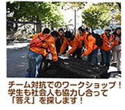 | 固定観念を排除すること、ゼロベースで考えること、チームワークの重要性、このワークショップを経験することにより、「新たな気づき」として、社会で“はたらく”ために重要な何かを得ることができます。 |